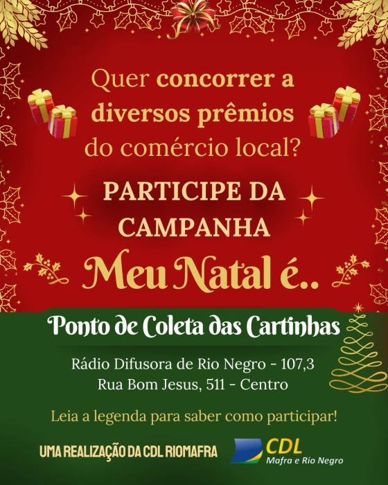 Entregue sua cartinha na Rádio e concorra a vale-compras e presentes do comércio local! 🎁